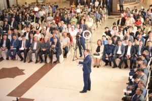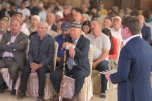 Жиынға Тассай, Азат, Мәртөбе, Таскен, Мирас, Қайтпас, Нұртас, Тұран және Нұрсәт шағын аудандарынан келген 500 ден астам тұрғын мен қала мәслихатының депутаттары, қоғамдық кеңес мүшелері, басқарма басшылары, БАҚ өкілдері қатысты.
